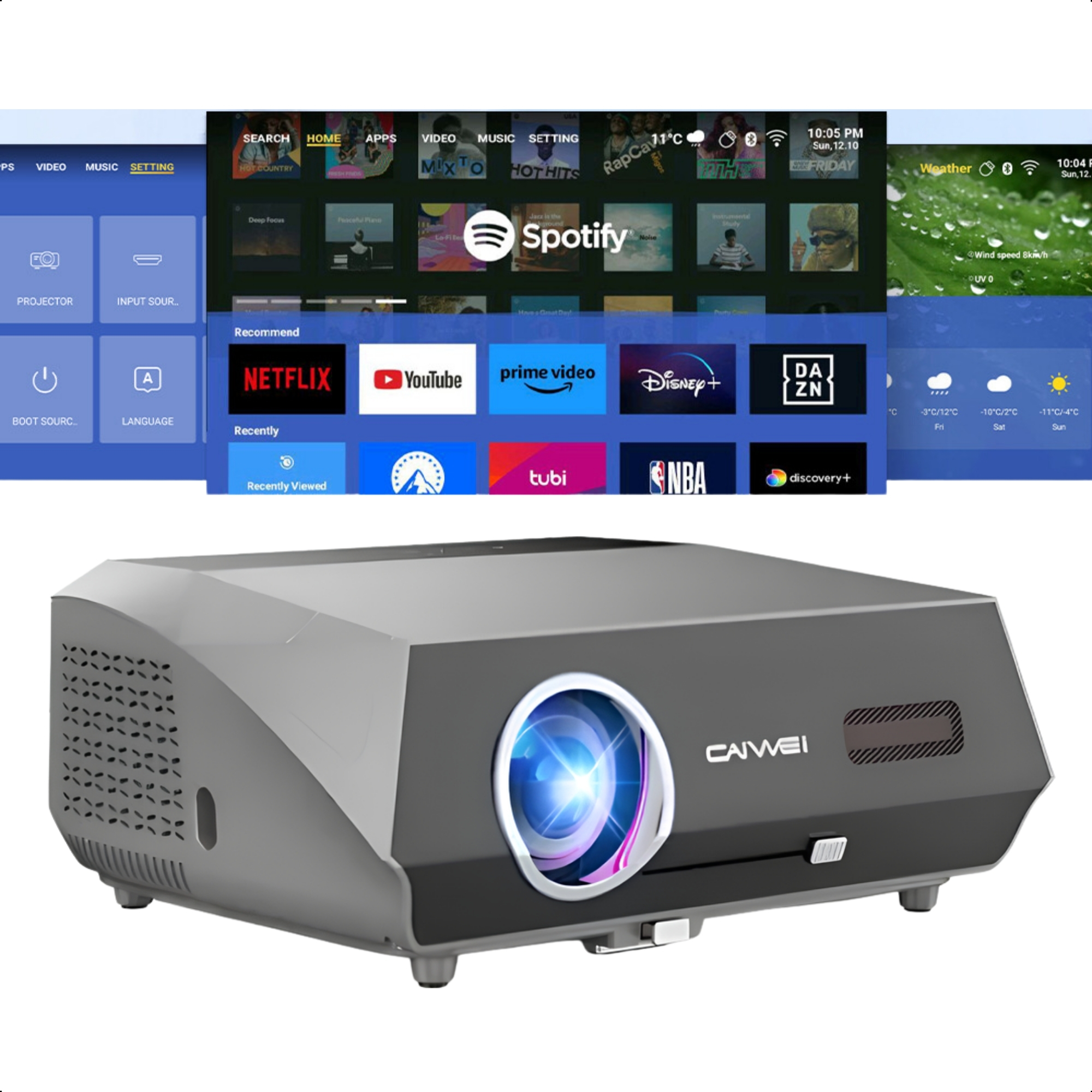 Projetor Caiwei A10Q 3500 ANSI Lumens Espelhamento Bluetooth Wifi Para Jogos Games Transmissões ao vivo